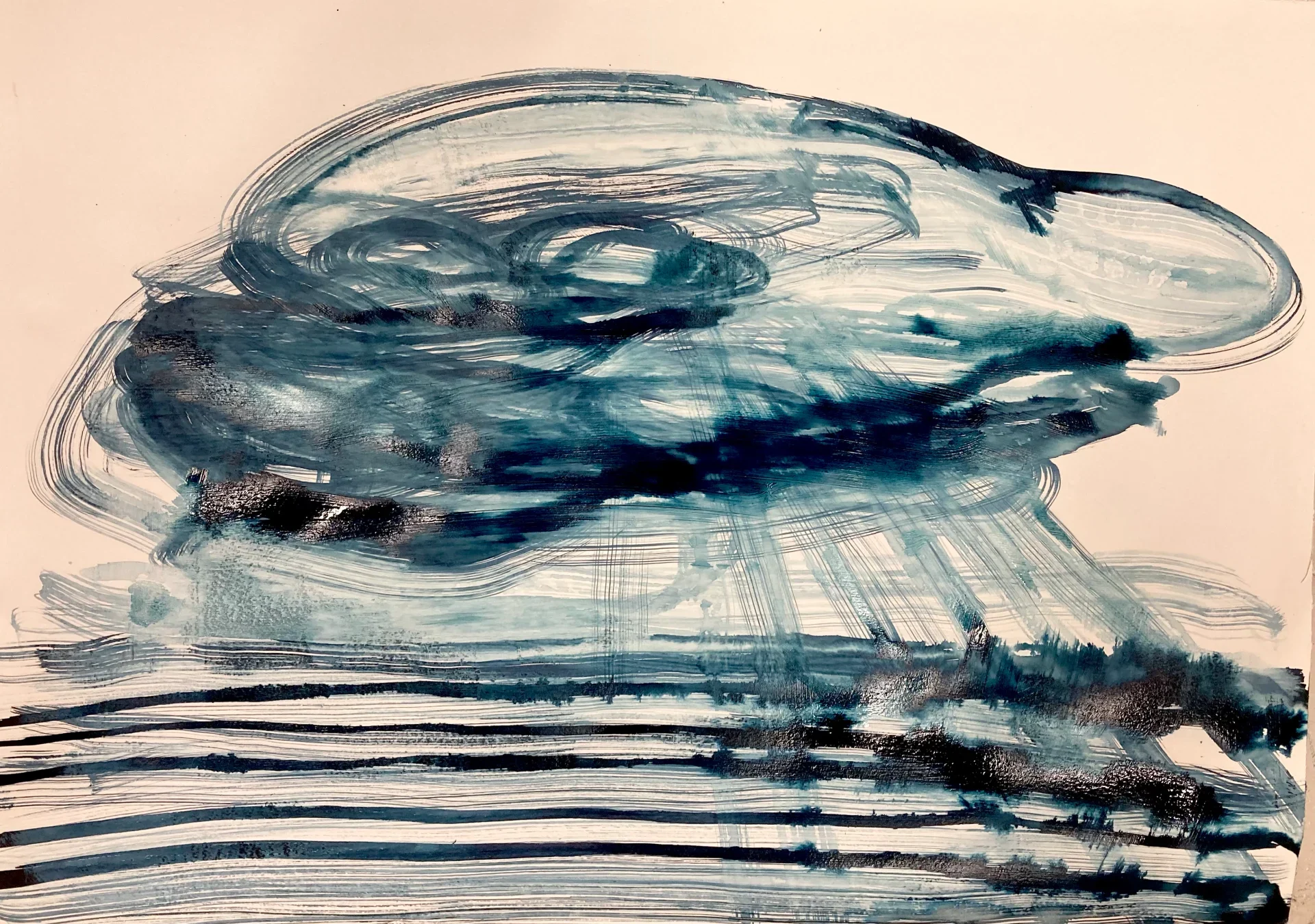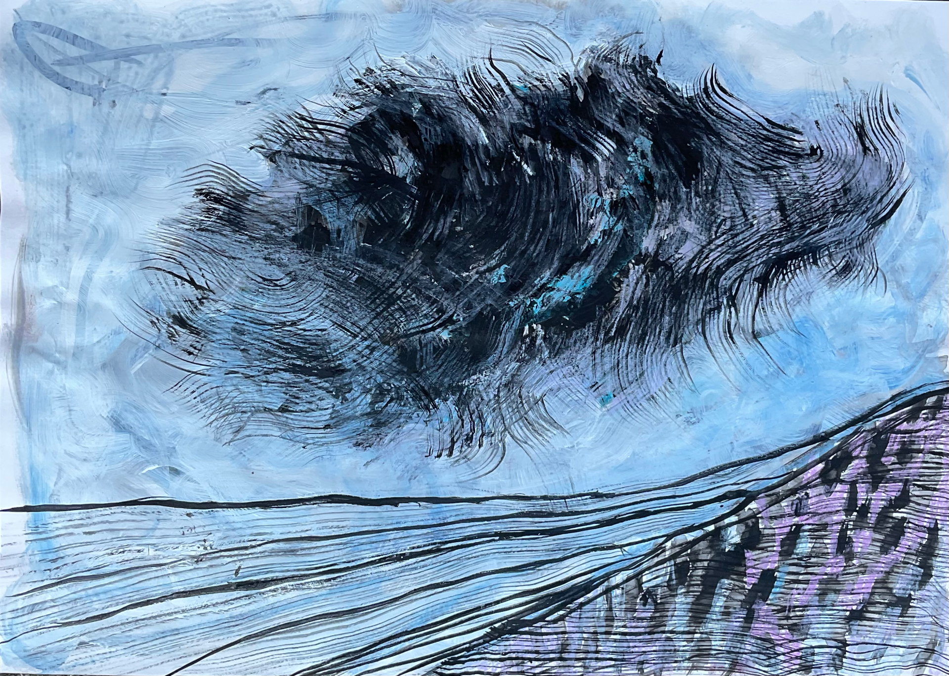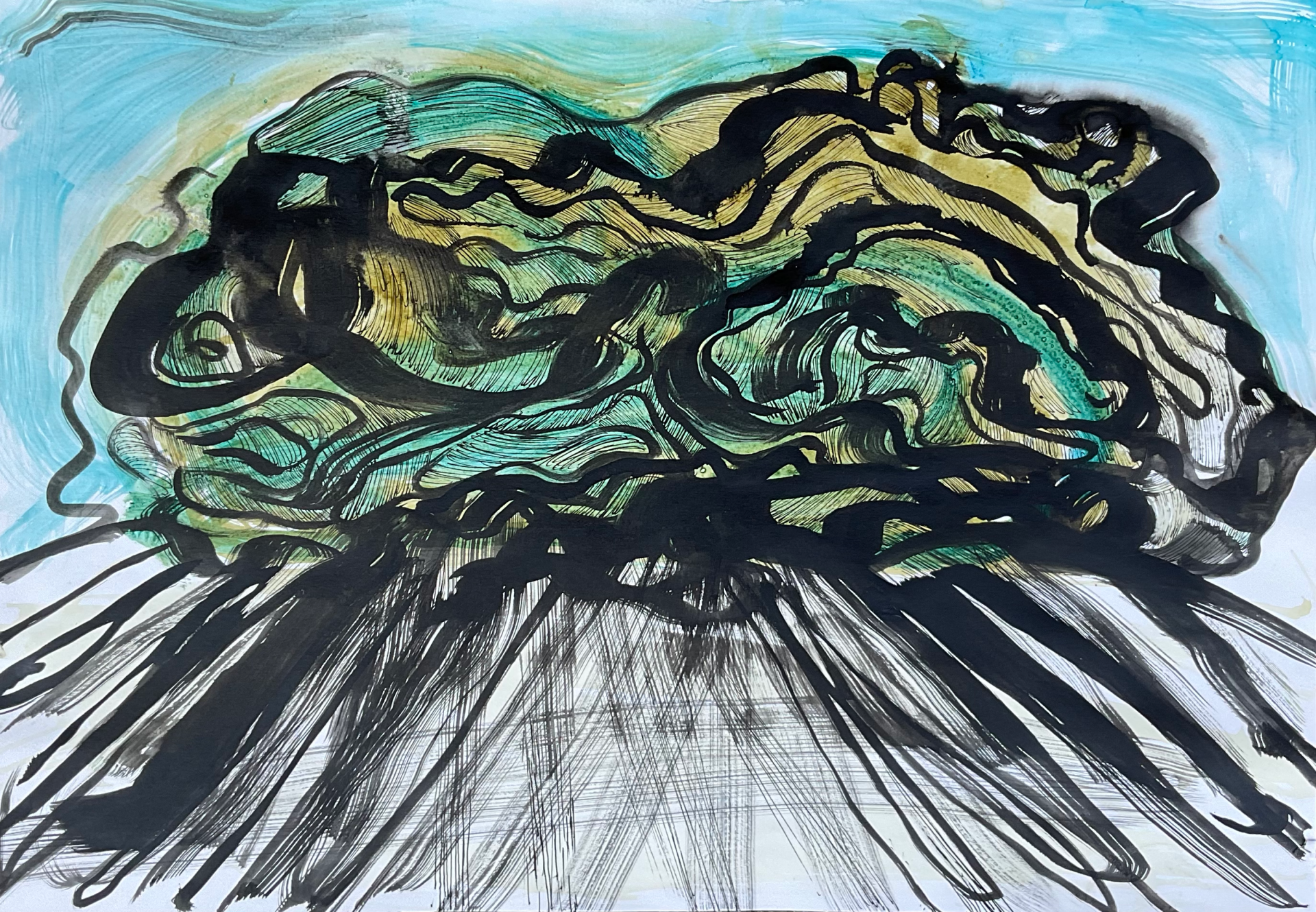 Moje prace na papierze powstają szybko. Pod wpływem impulsu, chwili, emocji. Do tego też motywuje mnie podłoże. Działam instynktownie, gestem. Myśl usprawnia cel. Prowadzi mnie ręka i oko. Im więcej robię rysunków tym większa jest moja twórcza swoboda. Chmury są dla mnie najbardziej uwolnionym żywiołem, który nieustannie mnie inspiruje.