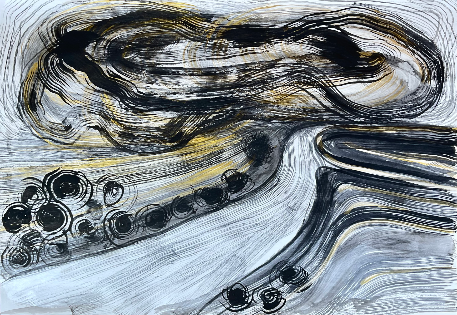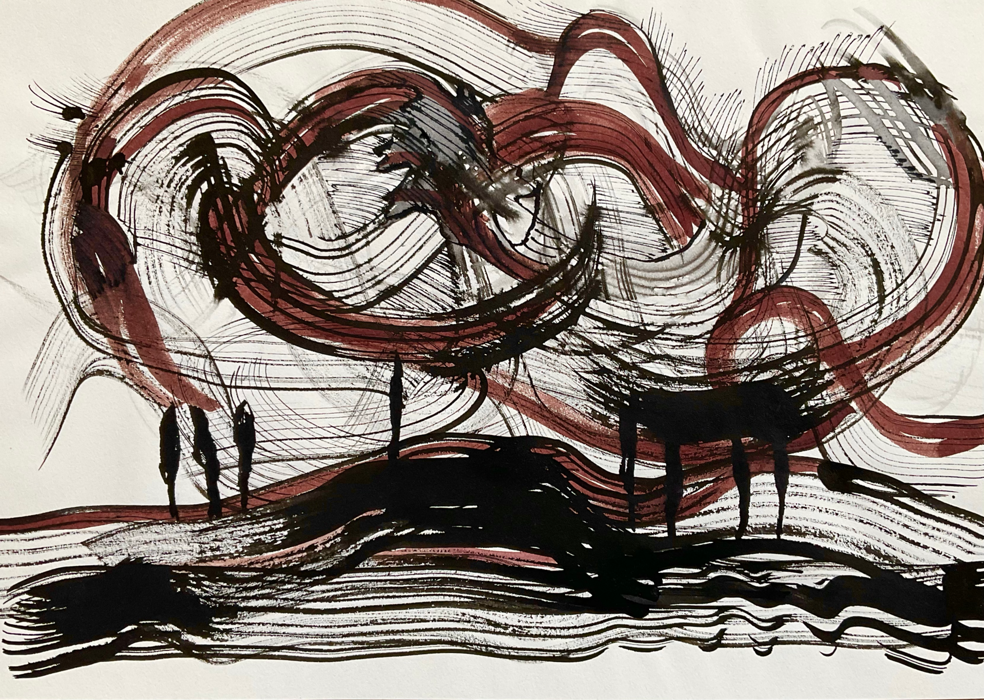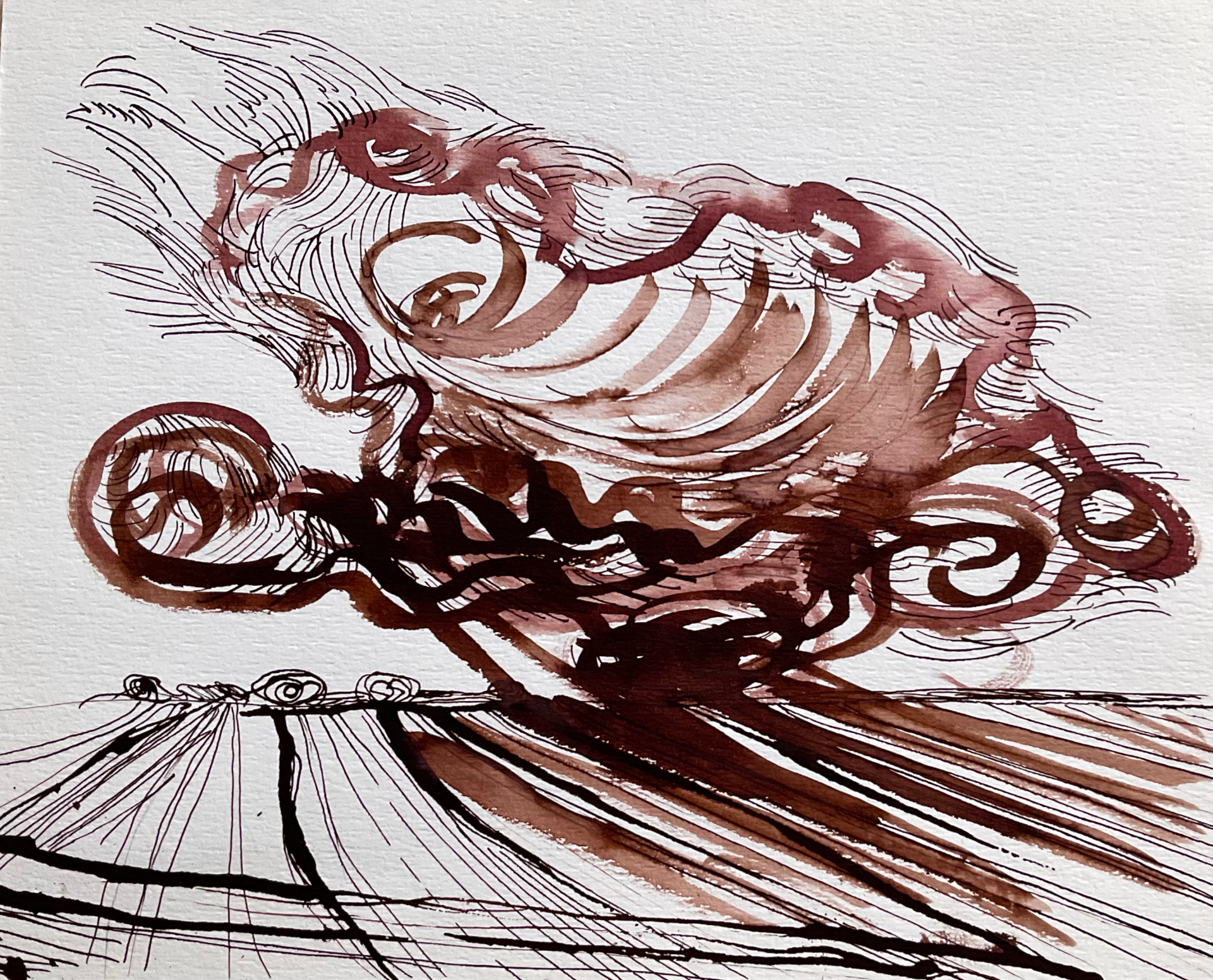 Moje prace na papierze powstają szybko. Pod wpływem impulsu, chwili, emocji. Do tego też motywuje mnie podłoże. Działam instynktownie, gestem. Myśl usprawnia cel. Prowadzi mnie ręka i oko. Im więcej robię rysunków tym większa jest moja twórcza swoboda. Chmury są dla mnie najbardziej uwolnionym żywiołem, który nieustannie mnie inspiruje.